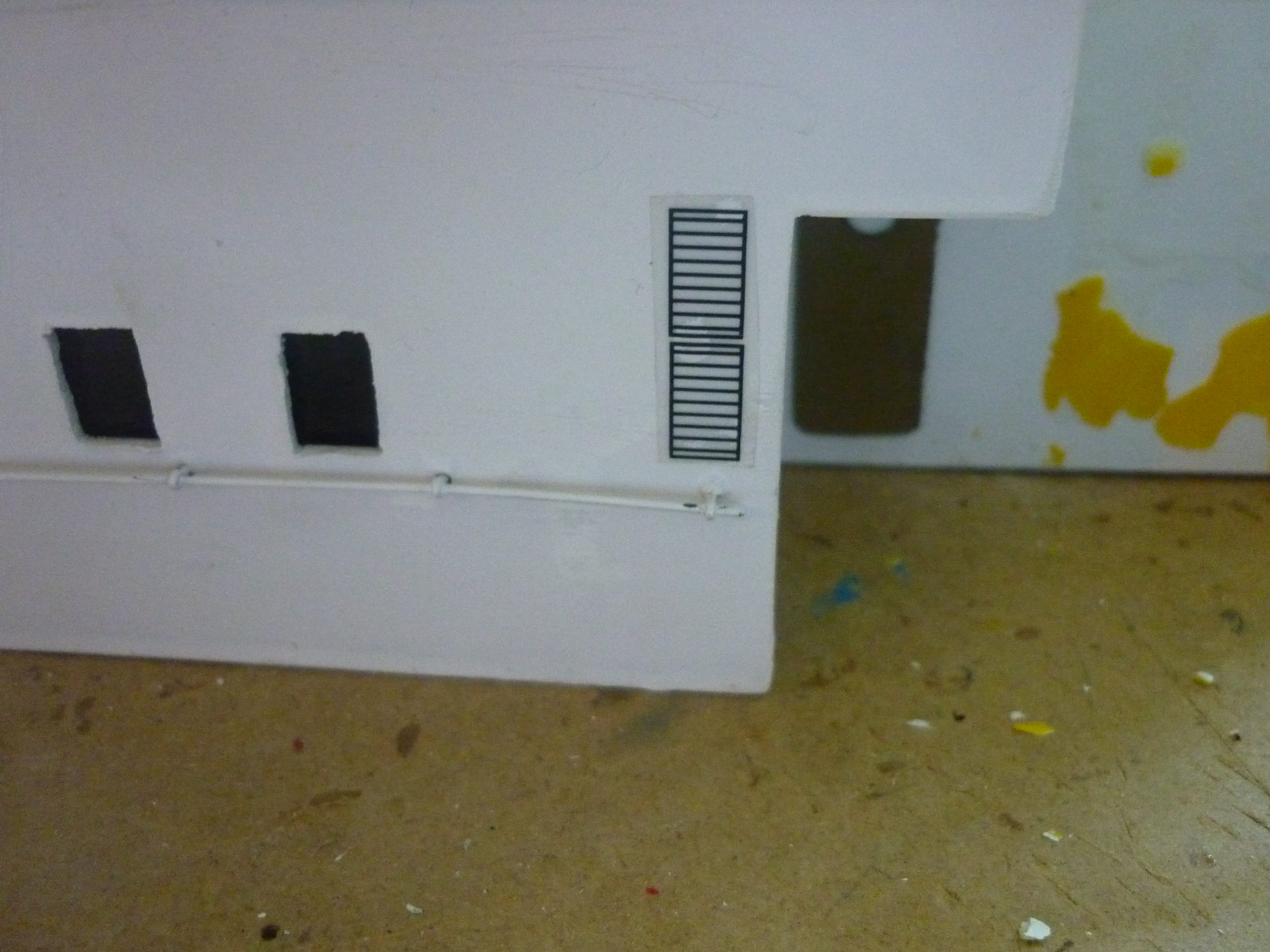 Die Tiefgangsmarken sind per Post eingetroffen. Sind etwas schlecht zu verarbeiten, weißer Druck auf helle Trägerfolie. Aber auch das ist zu schaffen und ……… weil einfach, einfach nicht mein Ding ist.