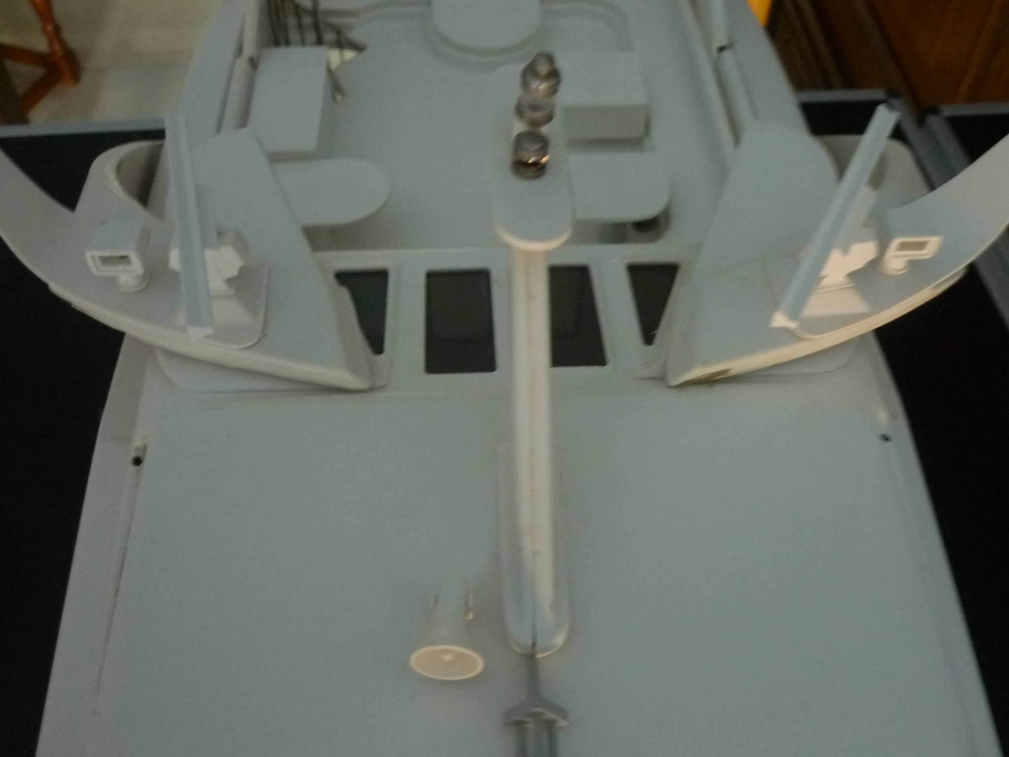 Der Aufbau des Rumpfes, der Einbau der Jetmotoren und des Querstrahruders bereiteten mir keine Schwierigkeiten. Die Grundierung wurde von mir auf Nitrobasis durchgeführt. Was ich zu diesem Zeitpunkt aber nicht wusste, mit Nitrolacken wurde nicht mehr gearbeitet nur noch mit Acryllacken. Jetzt tat sich bei mir die Frage auf—war die Arbeit umsonst? — Muß ich alles wieder abschleifen?
